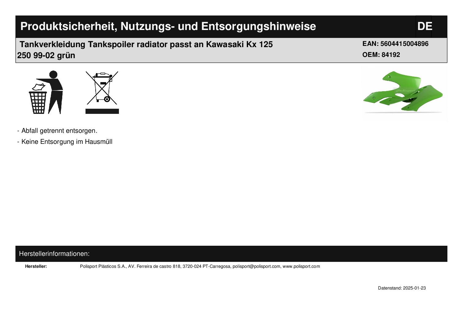 In dieser Auktion gibt es folgenden Artikel zu kaufen: Tankverkleidung (siehe Foto) Modell: passend für Kawasaki KX 125 Bj.: 99 - 02 KX 250 Bj.: 99 - 02 Lieferumfang: siehe Foto
