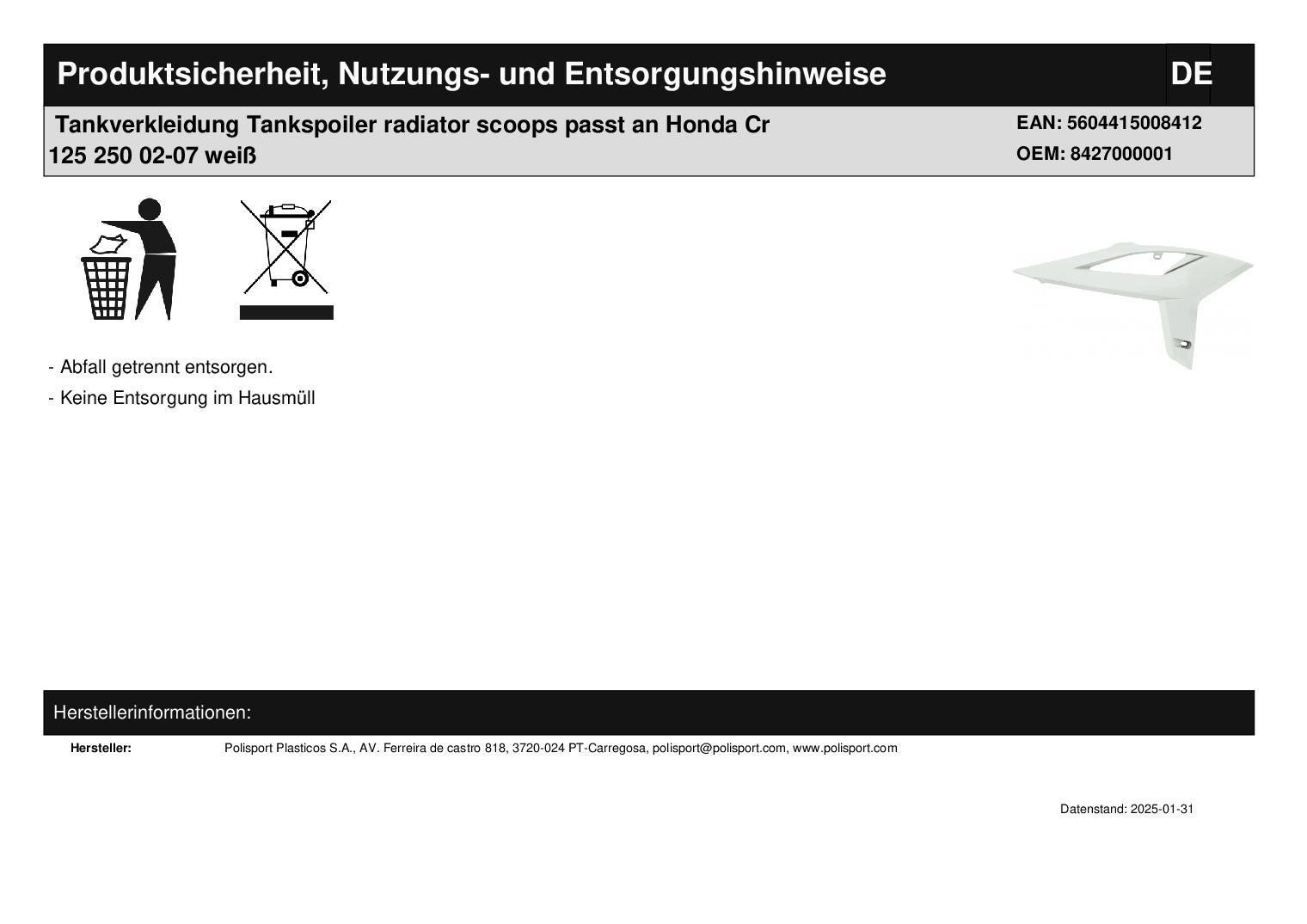 In dieser Auktion gibt es folgenden Artikel zu kaufen: Tankverkleidung (siehe Foto) Modell: passend für Honda CR 125 Bj.: 02 - 07 (2-Takt) CR 250 Bj.: 02 - 07 (2-Takt) Lieferumfang: siehe Foto Artikelzustand: neu Bei Unklarheiten oder Fragen bitte erst E-Mail schreiben.