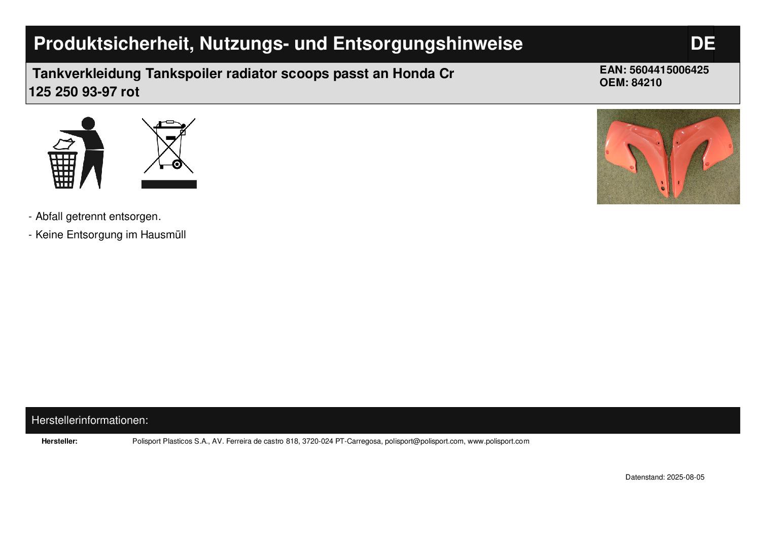 In dieser Auktion gibt es folgenden Artikel zu kaufen: Tankverkleidung (siehe Foto) Modell: passend für Honda CR 125 Bj.: 93 - 99 CR 250 Bj.: 93 - 97 Lieferumfang: siehe Foto