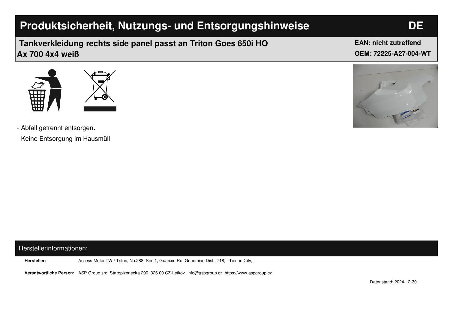 In dieser Auktion gibt es folgenden Artikel zu kaufen: Tankverkleidung rechts (siehe Foto) Modell: passend für Triton