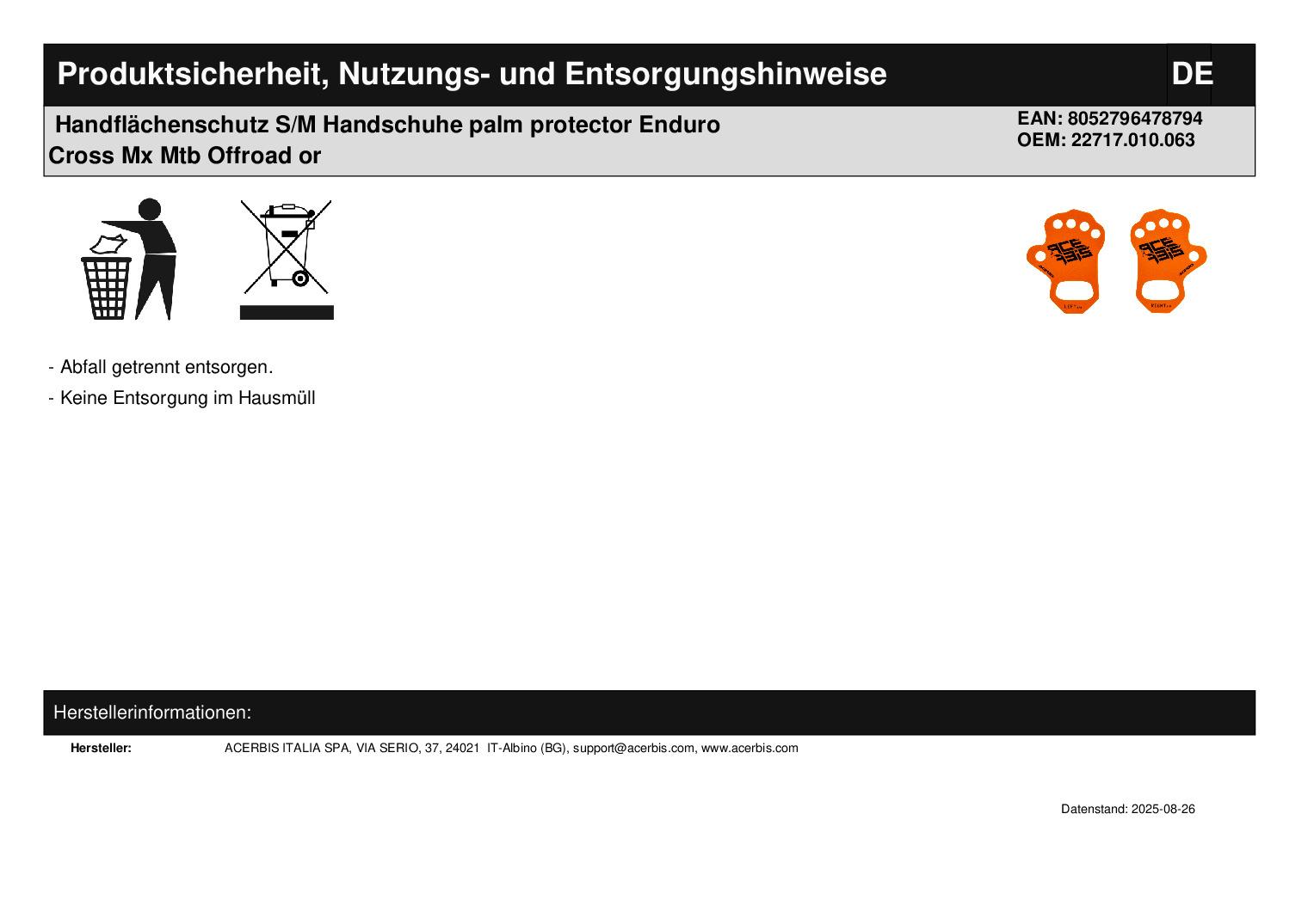 Titel: Handflächenschutz S/M Handschuhe palm protector Enduro Cross Mx Mtb Offroad or