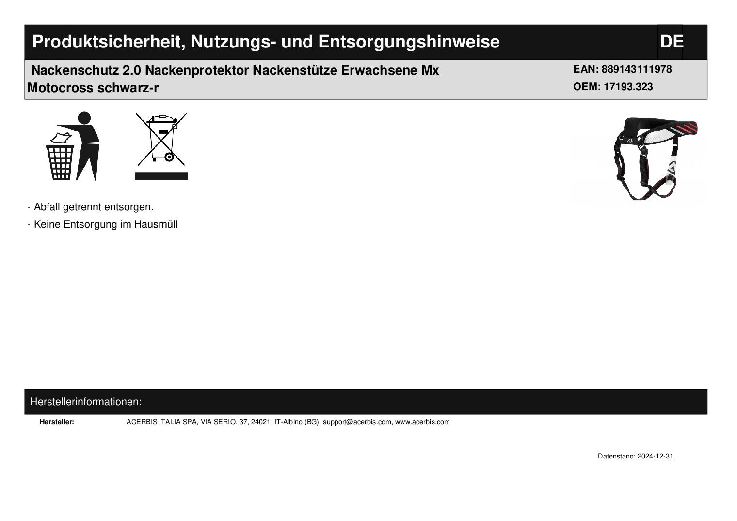 Acerbis Nackenschutz Nackenprotektor Nackenstütze - Lager -