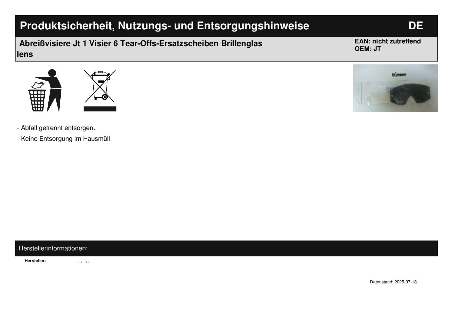 In dieser Auktion gibt es folgenden Artikel zu kaufen: Visier + Tear-Offs (siehe Foto) passend für Brillentyp: JT Lieferumfang: 1 x Visier 6 x Tear-Offs Artikelzustand: neu Bei Unklarheiten oder Fragen bitte erst E-Mail schreiben.