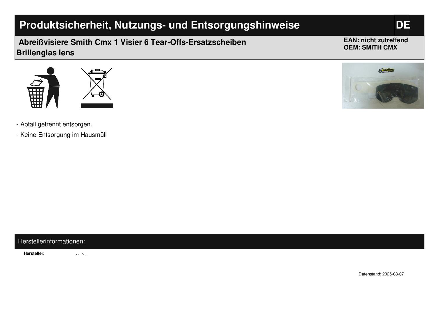 In dieser Auktion gibt es folgenden Artikel zu kaufen: Visier + Tear-Offs (siehe Foto) passend für Brillentyp: SMITH CMX