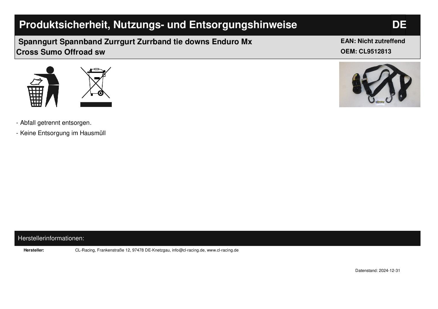 In dieser Auktion gibt es folgenden Artikel zu kaufen: Spanngurte (siehe Foto) Details: Breite: 37 mm Länge: ca. 1,8 Meter Tragkraft: max. 600 kg (Paar) Artikelbeschreibung: Die Spanngurte gewährleisten den sicheren Transport des Motorrads. Die Arretierungsschnallen sind mit zwei Feldern ausgestattet, um ein zufälliges Lösen zu verhindern. Lieferumfang: 1 Paar