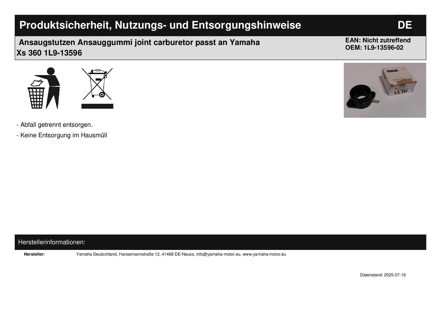 In dieser Auktion gibt es folgenden Artikel zu kaufen: Ansaugstutzen (siehe Foto) Modell: passend für Yamaha XS 360 Bj.: 76 - 77 Lieferumfang: siehe Foto Artikelzustand: neu aus Geschäftsauflösung, mit minimalen Lagerspuren; Zustand siehe Foto