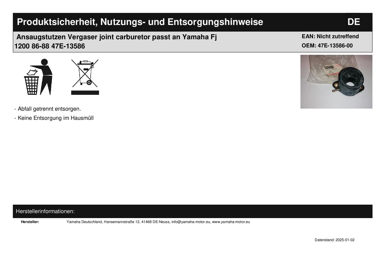 In dieser Auktion gibt es folgenden Artikel zu kaufen: Ansaugstutzen (siehe Foto) Modell: passend für Yamaha FJ 1200 Bj.: 86 - 88 Lieferumfang: siehe Foto Artikelzustand: neu aus Geschäftsauflösung, mit leichten Lagerspuren; Zustand siehe Foto Bei Unklarheiten oder Fragen bitte erst E-Mail schreiben.