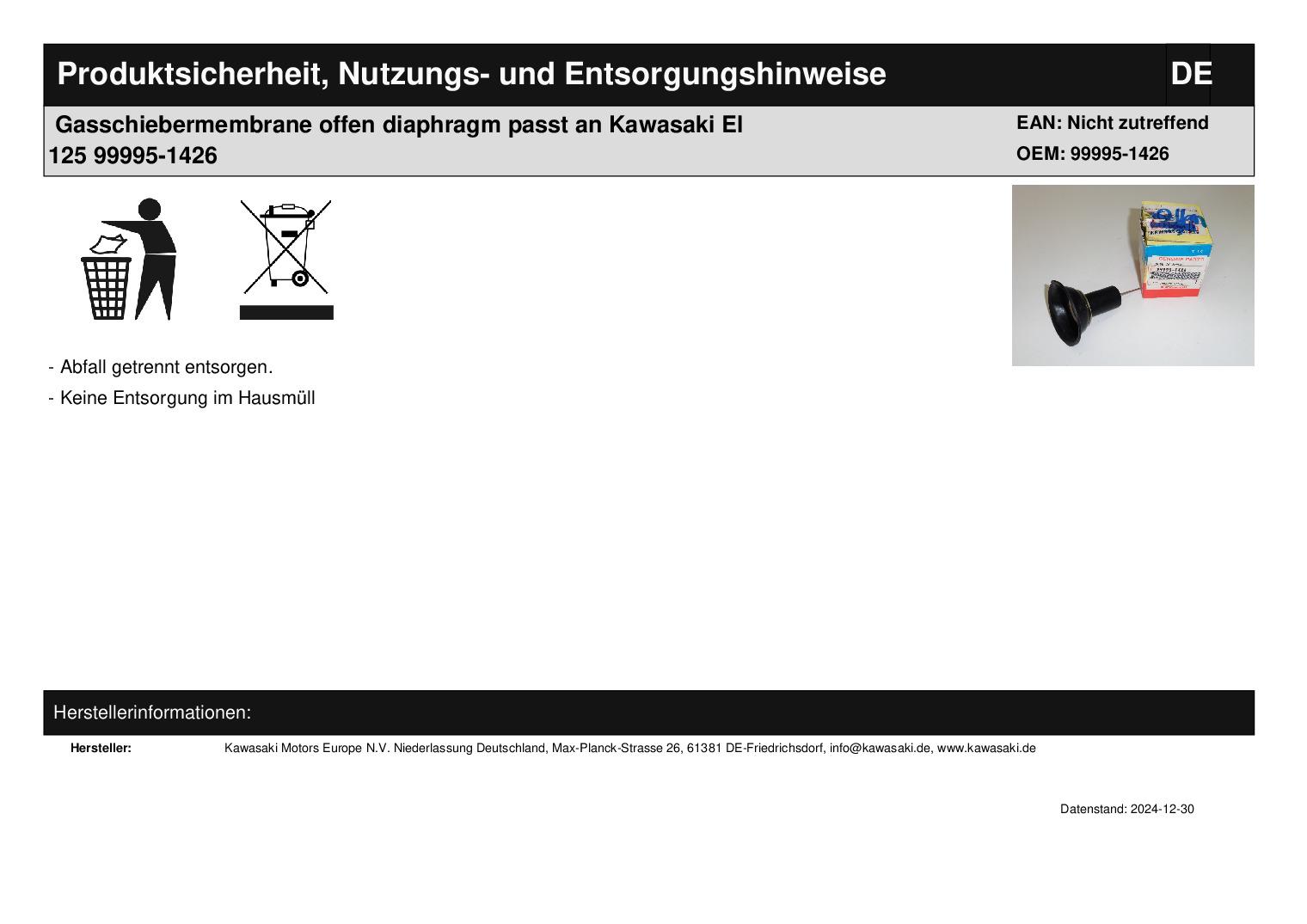 Gasschiebermembrane offen diaphragm passt an Kawasaki El 125 99995-1426