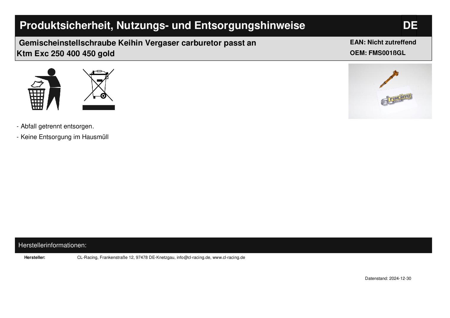 • Gemischeinstellschraube Keihin Vergaser carburetor passt an Ktm Exc 250 450 gold
