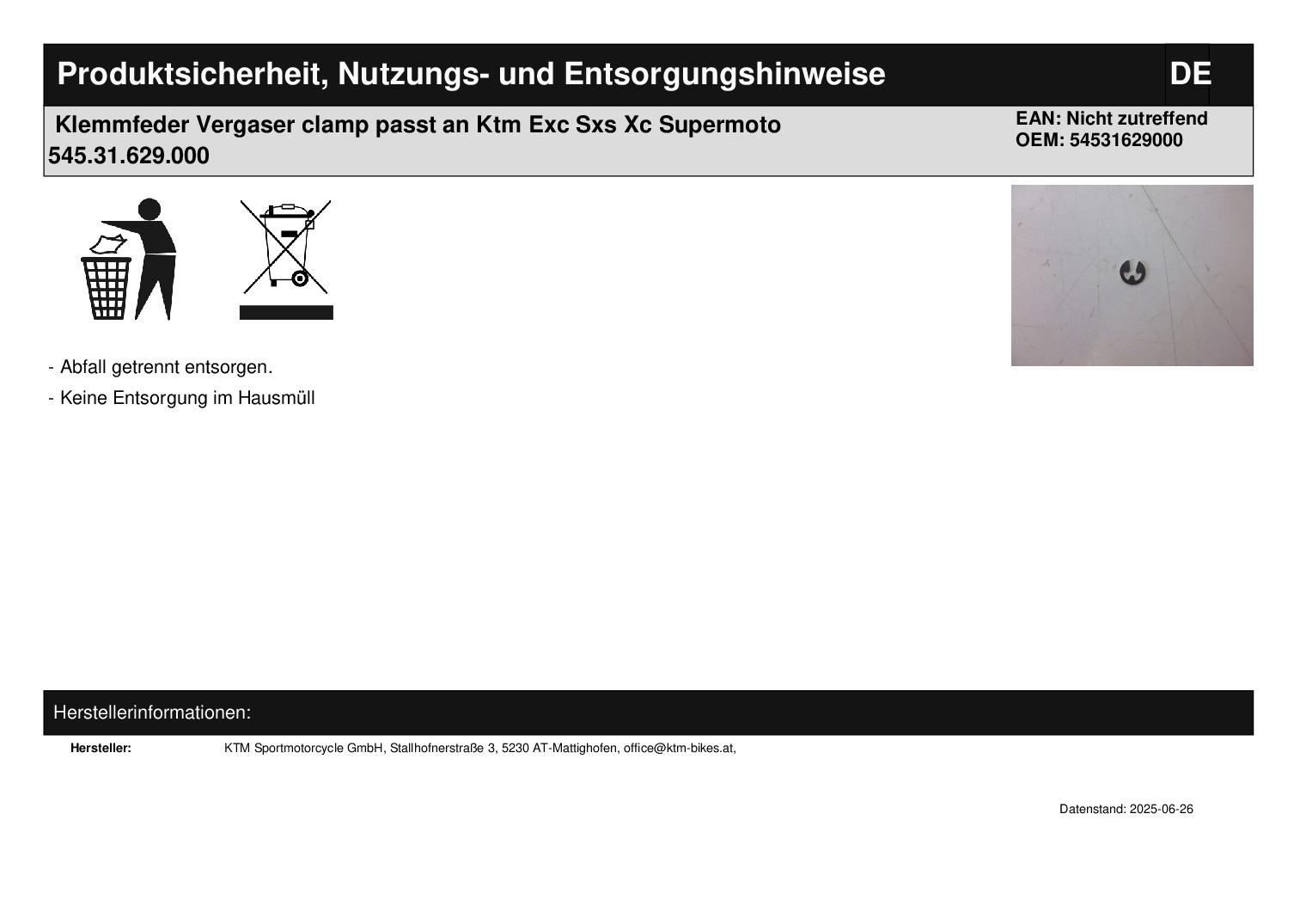 In dieser Auktion gibt es folgenden Artikel zu kaufen: Klemmfeder (siehe Foto) Modell: passend für KTM EXC, SXS, XC, Supermoto Bj.: unbekannt Lieferumfang: 1 Stück Artikelzustand: neu aus Geschäftsauflösung, mit minimalen Lagerspuren; Zustand siehe Foto Bei Unklarheiten oder Fragen bitte erst E-Mail schreiben.