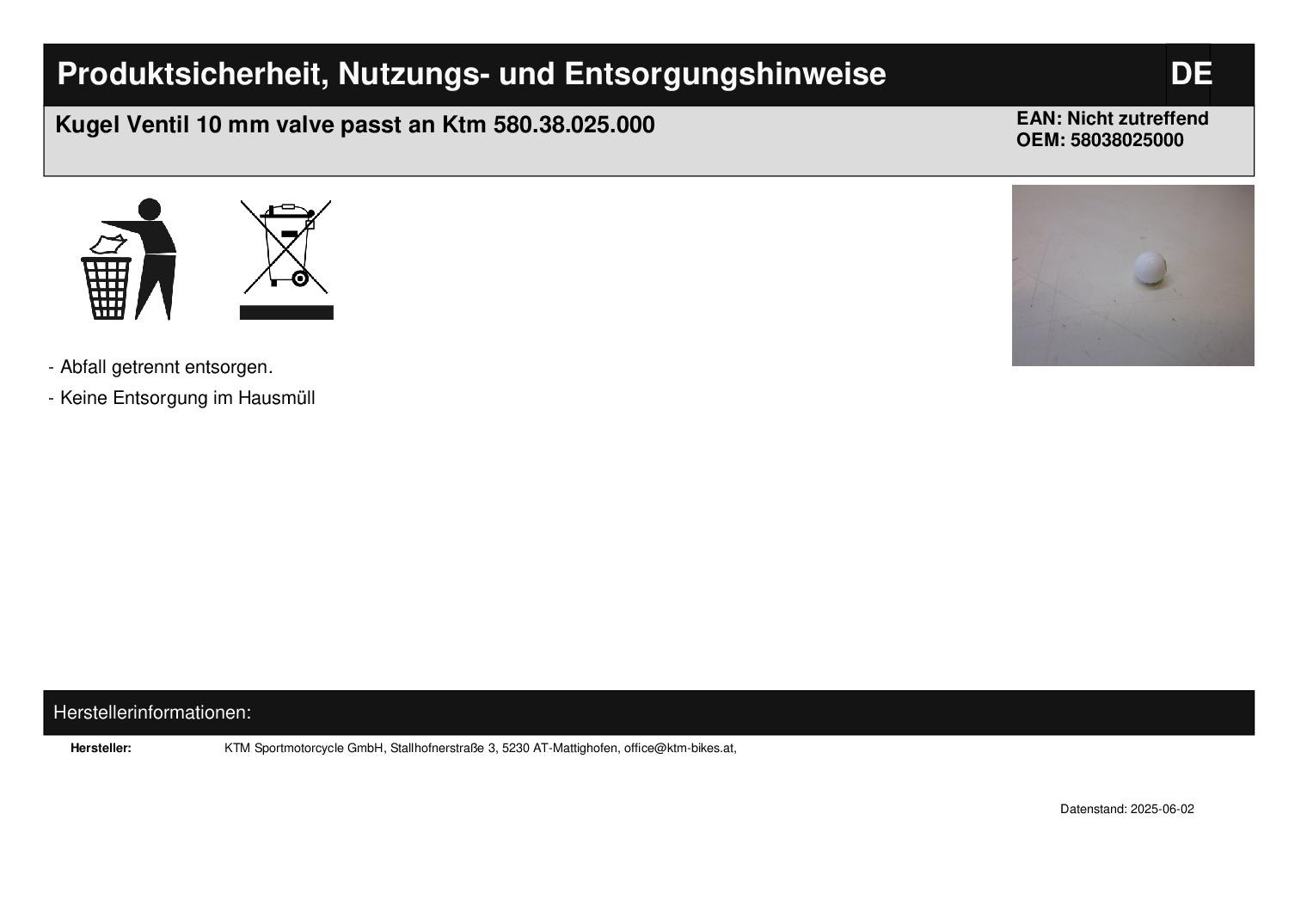 Titel: Kugel Ventil 10 mm valve passt an Ktm 580.38.025.000