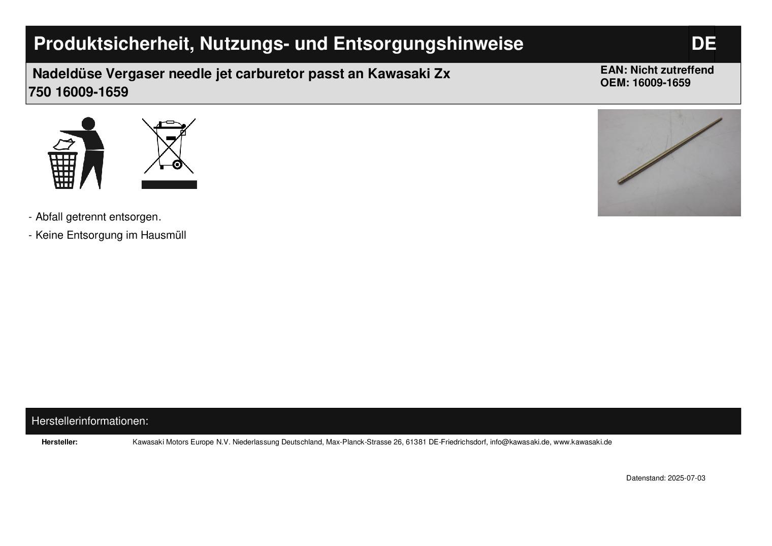 • Nadeldüse Vergaser needle jet carburetor passt an Kawasaki Zx 750 16009-1659