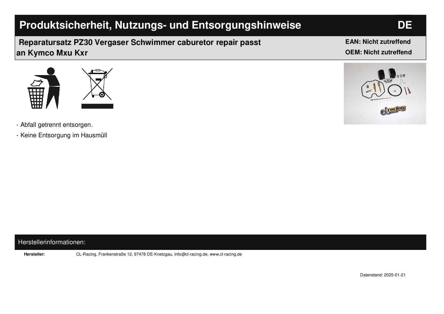 In dieser Auktion gibt es folgenden Artikel zu kaufen: Reparatursatz für einen PZ30 Vergaser aus dem Zubehör (siehe Foto) passend für Typ: PZ30 Vergaser Bj.: unbekannt Lieferumfang: siehe Foto Artikelzustand: neu Bei Unklarheiten oder Fragen bitte erst E-Mail schreiben.