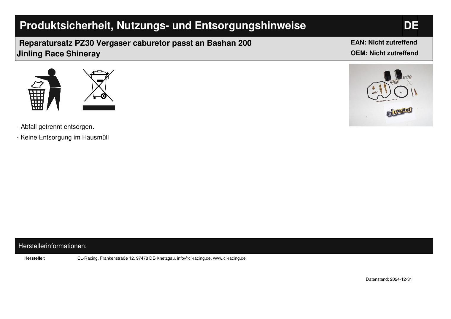In dieser Auktion gibt es folgenden Artikel zu kaufen: Reparatursatz für einen PZ30 aus dem Zubehör (siehe Foto) passend für Typ: PZ30 Vergaser Bj.: unbekannt Lieferumfang: siehe Foto Artikelzustand: neu Bei Unklarheiten oder Fragen bitte erst E-Mail schreiben.