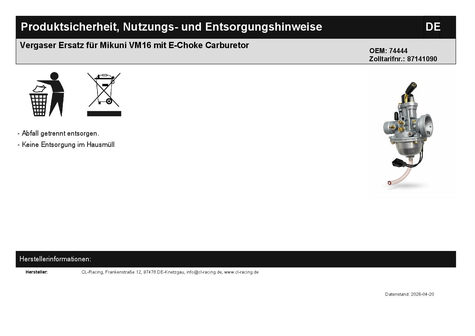 In dieser Auktion gibt es folgenden Artikel zu kaufen: Ø 18 mm Vergaser Nachbau (siehe Foto) Modelle: passend für viele Sachs, Hercules mit diesem Vergasertyp Abmaße: Anschlussdurchmesser am Ansaugstutzen: ca. 24 mm Anschlussdurchmesser am Luftfilterkasten: ca. 35 mm Bitte Abmaße vergleichen! Lieferumfang: siehe Foto Artikelzustand: neu Bei Unklarheiten oder Fragen bitte erst E-Mail schreiben.