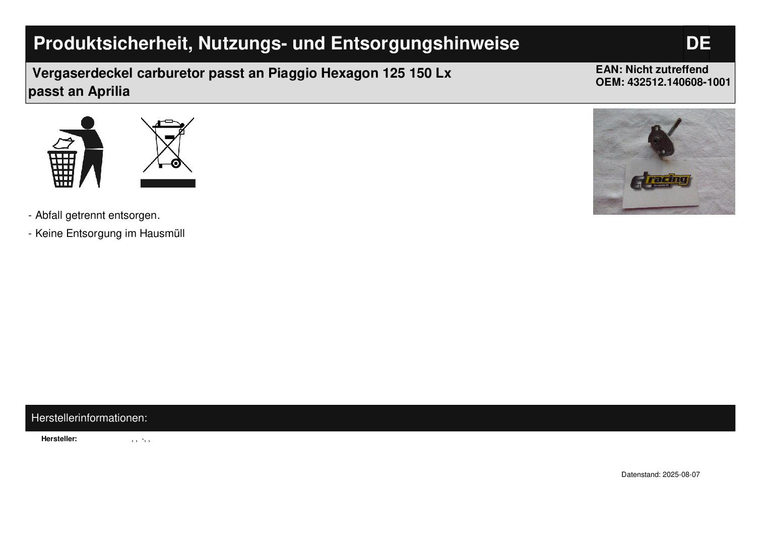 In dieser Auktion gibt es folgenden Artikel zu kaufen: Vergaserdeckel (siehe Foto) Modell: passend für Piaggio Hexagon 125, 150 Bj.: unbekannt Hexagon LX 125 Bj.: unbekannt passend Aprilia SR 150 Bj.: bis 2001 Lieferumfang: siehe Foto Artikelzustand: neu aus Geschäftsauflösung, mit minimalen Lagerspuren, Zustand siehe Foto Bei Unklarheiten oder Fragen bitte erst E-Mail schreiben.