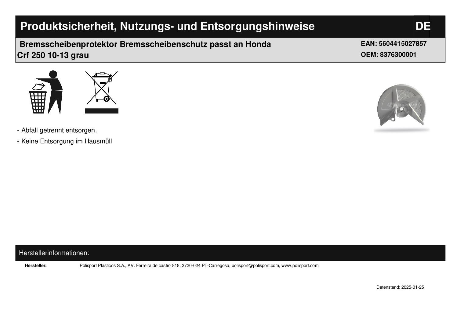 In dieser Auktion gibt es folgenden Artikel zu kaufen: Bremsscheibenprotektor (siehe Foto) Modell: passend für Honda CR 500 Bj.: 95 - 01 CRF 250 Bj.: 10 - 13 CRF 450 Bj.: 09 - 12 Lieferumfang: 1 Stück Artikelzustand: neu Bei Unklarheiten oder Fragen bitte erst E-Mail schreiben.