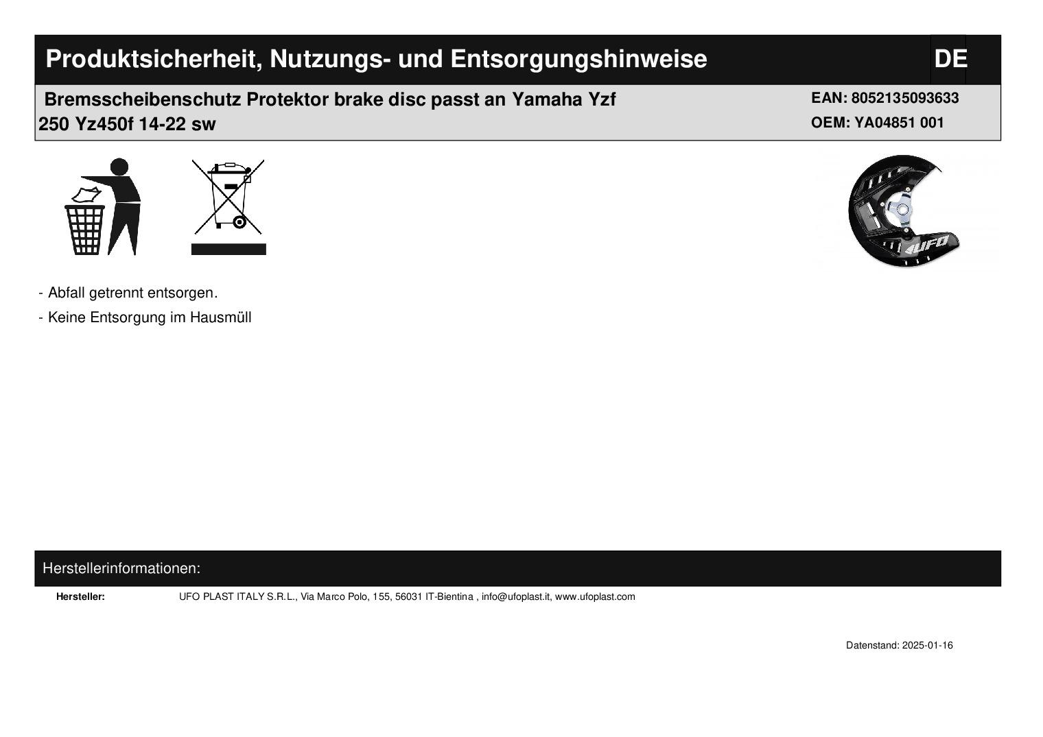 In dieser Auktion gibt es folgenden Artikel zu kaufen: Bremsscheibenprotektor (ähnlich Foto) Modell: passend für Yamaha YZF 250, 450 Bj.: 14 - 22 Lieferumfang: siehe Foto Artikelzustand: neu aus Geschäftsauflösung, mit leichten Lagerspuren; Zustand ähnlich Foto Bei Unklarheiten oder Fragen bitte erst E-Mail schreiben.
