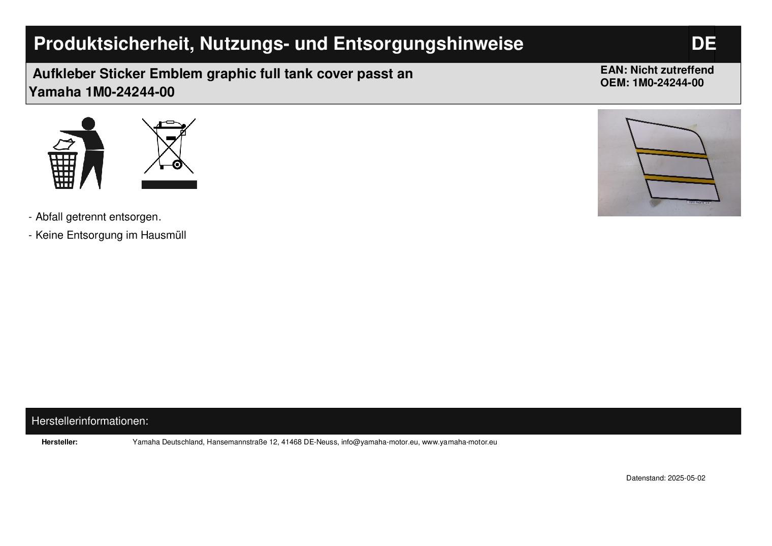 In dieser Auktion gibt es folgenden Artikel zu kaufen: Aufkleber (siehe Foto) Modell: passend für Yamaha