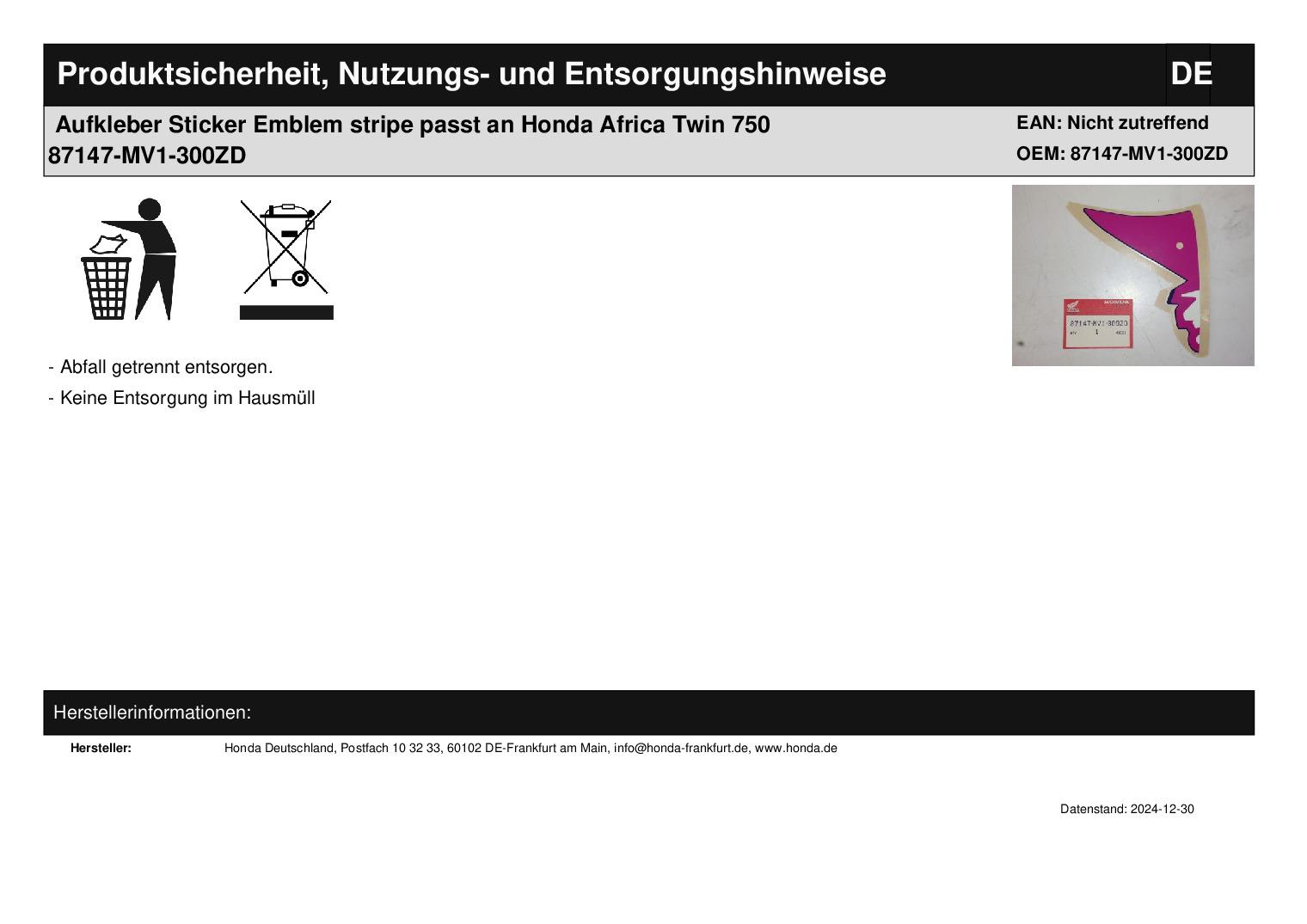 In dieser Auktion gibt es folgenden Artikel zu kaufen: Aufkleber (siehe Foto) Modell: passend für Honda