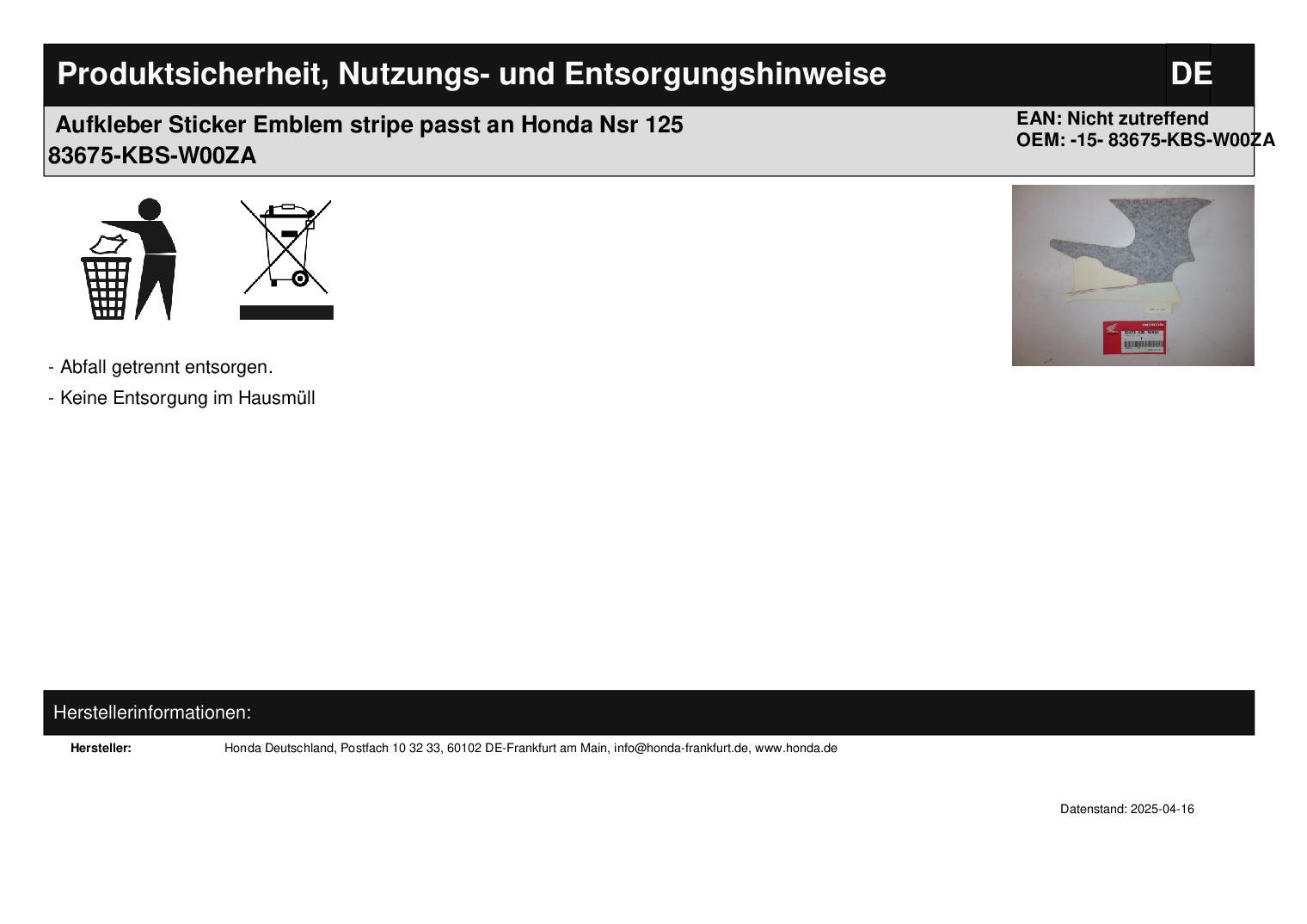 Titel: Aufkleber Sticker Emblem stripe passt an Honda Nsr 125 83675-KBS-W00ZA