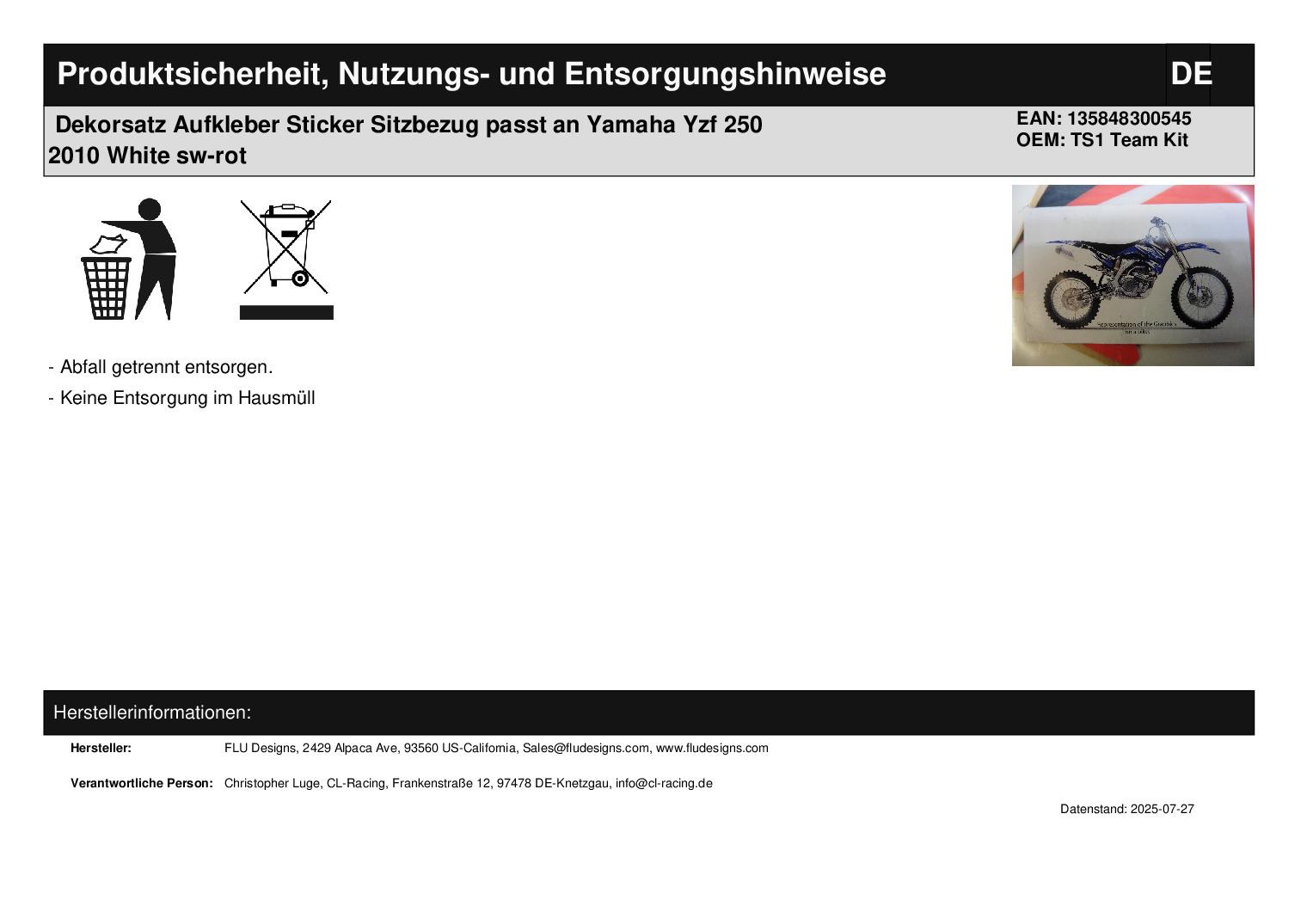In dieser Auktion gibt es folgenden Artikel zu kaufen: Dekorsatz (siehe Foto) Bild 1 dient als Muster! Modell: passend für Yamaha YZF 250 Bj.: 10 Lieferumfang: Dekor incl. Sitzbezug Artikelzustand: neu Bei Unklarheiten oder Fragen bitte erst E-Mail schreiben.