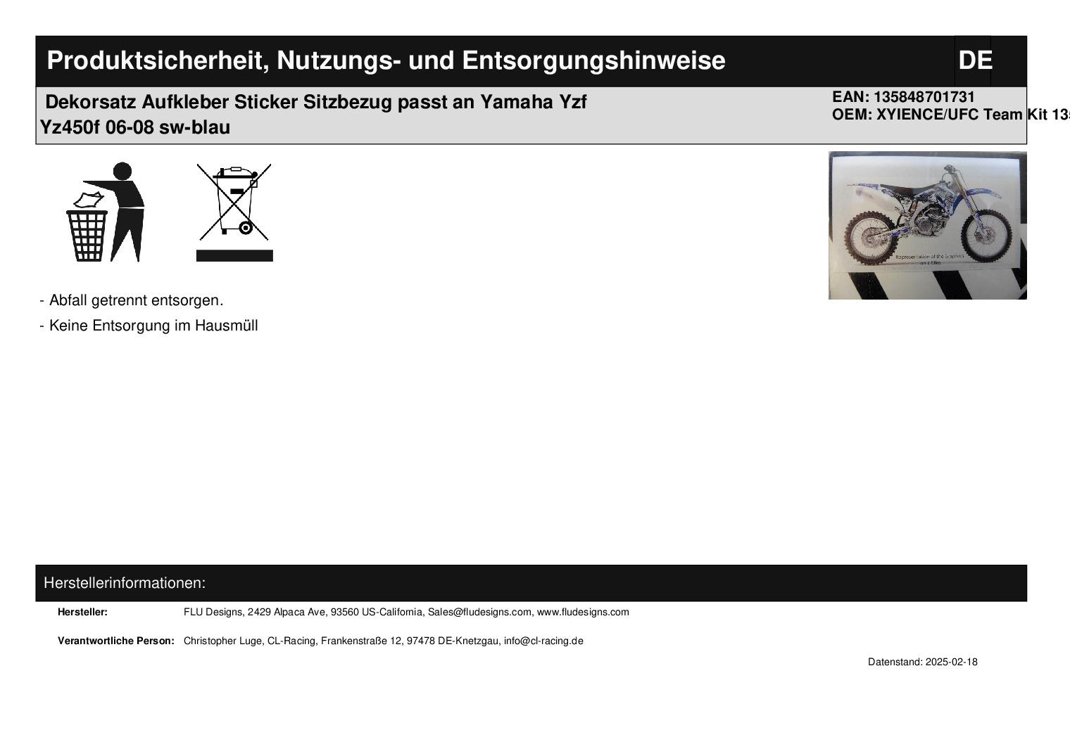 In dieser Auktion gibt es folgenden Artikel zu kaufen: Dekorsatz (siehe Foto) Modell: passend für Yamaha YZ F 450 Bj.: 06 - 08 Lieferumfang: Dekor incl. Sitzbezug Artikelzustand: neu Bei Unklarheiten oder Fragen bitte erst E-Mail schreiben.