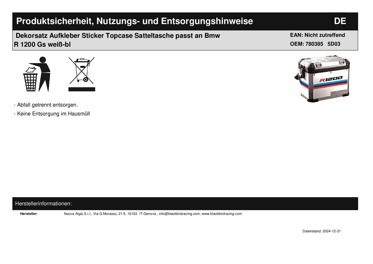 In dieser Auktion gibt es folgenden Artikel zu kaufen: Dekorsatz für Topcase / Satteltasche (siehe Foto) Modell: passend für BMW R 1200 GS Bj.: unbekannt Lieferumfang: Dekorsatz siehe Foto - ohne Topcase! Artikelzustand: neu Bei Unklarheiten oder Fragen bitte erst E-Mail schreiben.