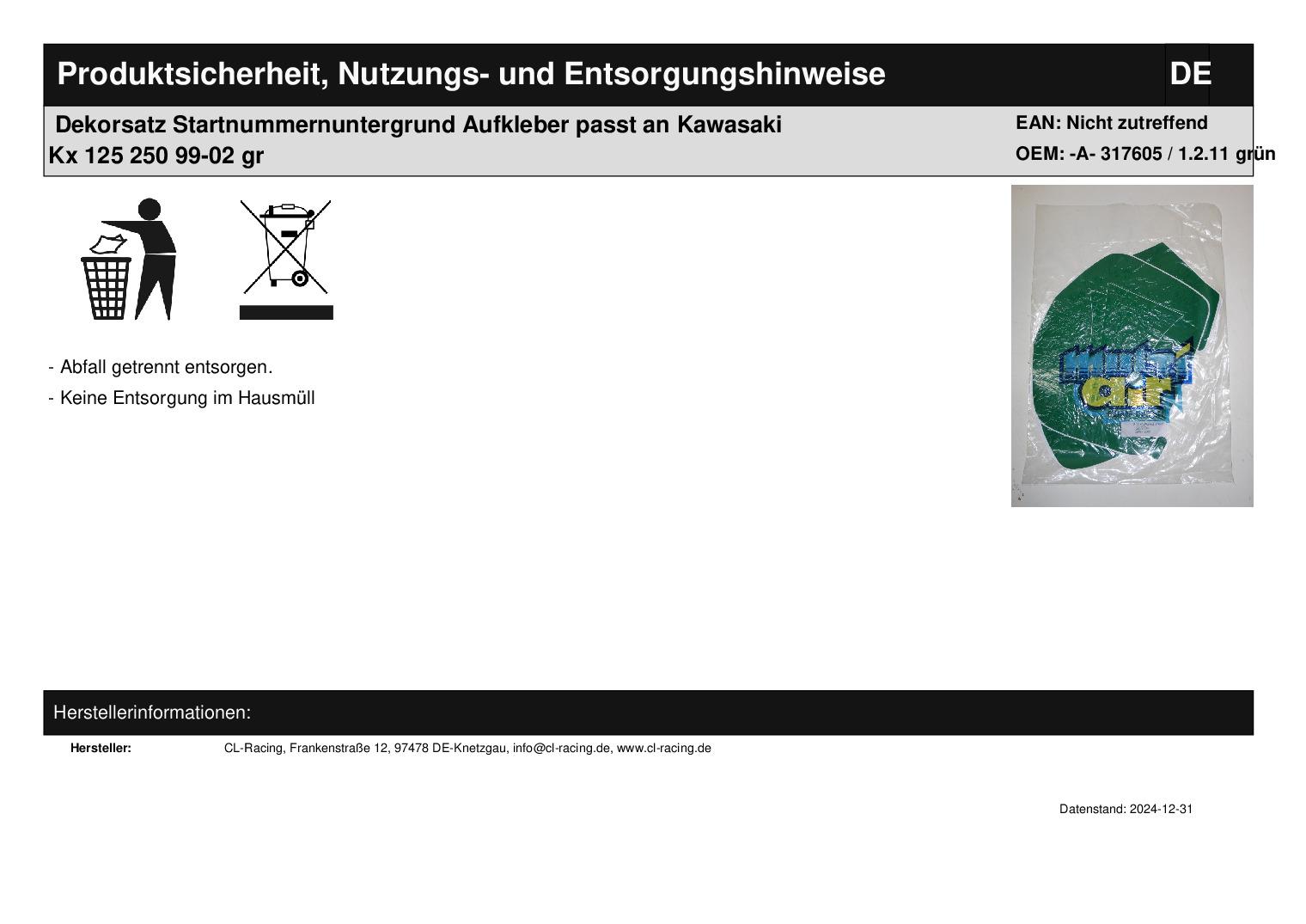 Herstellernummer: -A- 317605 / 1.2.11 grün