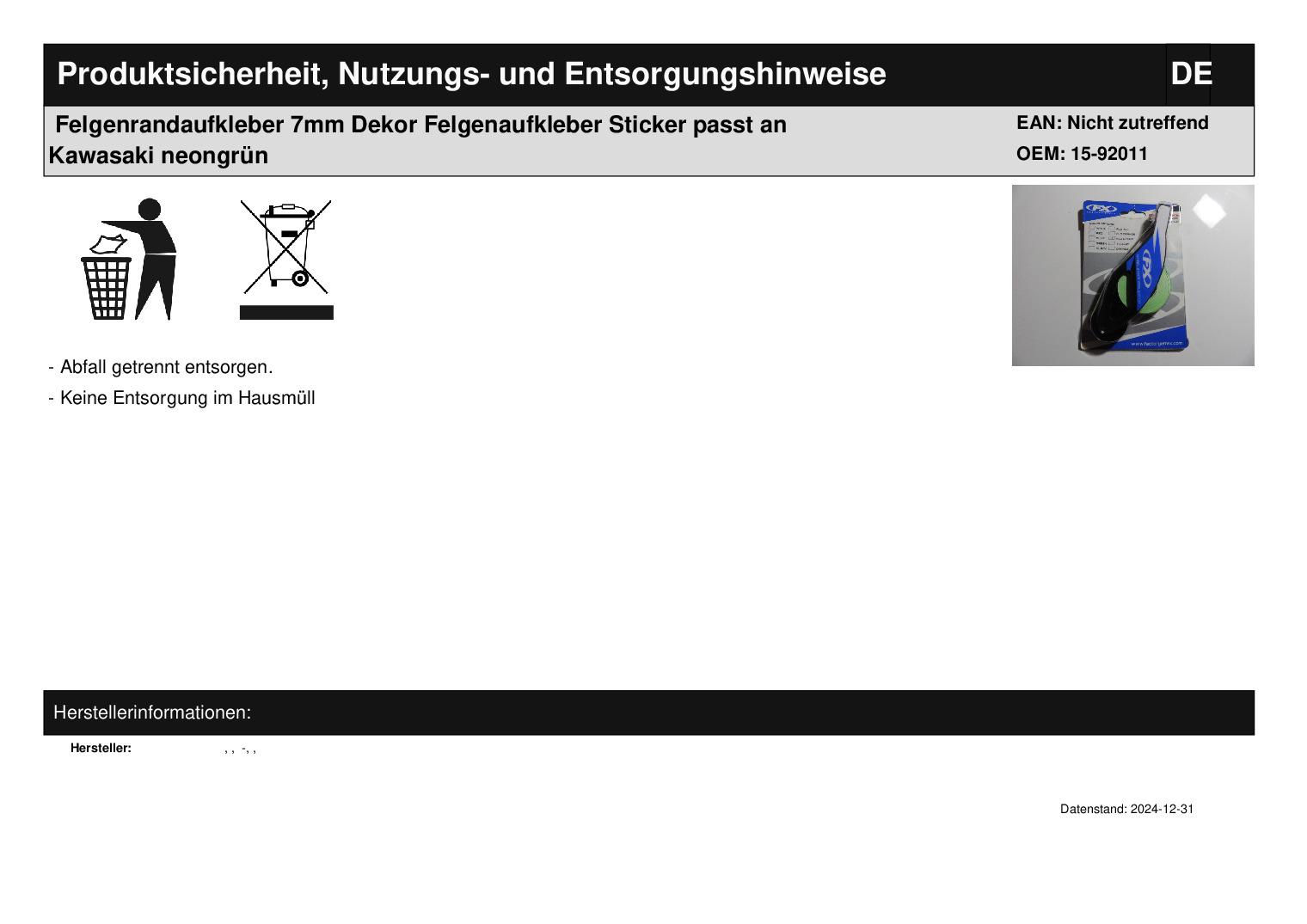 Titel: Felgenrandaufkleber 7mm Dekor Felgenaufkleber Sticker passt an Kawasaki neongrün