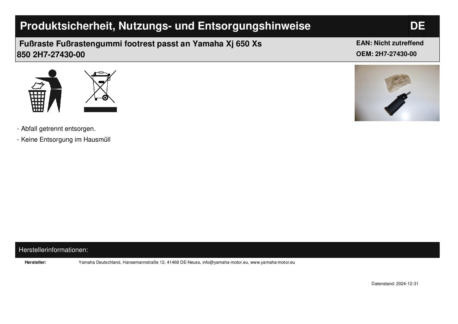 In dieser Auktion gibt es folgenden Artikel zu kaufen: originale Fußraste hinten links (siehe Foto) Modell: passend für Yamaha XS 1100 Bj.: 1978 - 1979 XS 750 Bj.: 1979 XS 850 Bj.: 1980 XJ 650 Bj.: 1982 Lieferumfang: 1 Stück Artikelzustand: neu aus Geschäftsauflösung, mit minimalen Lagerspuren; Zustand siehe Foto Bei Unklarheiten oder Fragen bitte erst E-Mail schreiben.