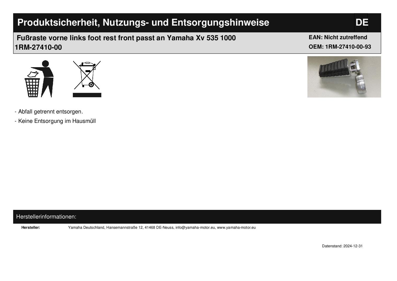 In dieser Auktion gibt es folgenden Artikel zu kaufen: vordere Fußraste links (siehe Foto) Modell: passend für Yamaha VIRAGO XV 535 Bj.: 89 - 01 VIRAGO XV 1000 Bj.: 1989 VIRAGO XV 1100 Bj.: 1988 VIRAGO XV 500 Bj.: 92 - 96 VIRAGO XV 500 S Bj.: 95 - 96 Lieferumfang: siehe Foto Artikelzustand: neu aus Geschäftsauflösung, mit leichten Lagerspuren; Zustand siehe Foto Bei Unklarheiten oder Fragen bitte erst E-Mail schreiben.