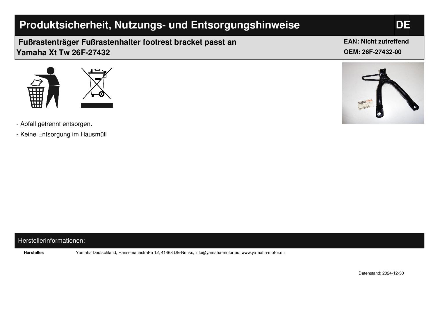 Fußrastenträger Fußrastenhalter footrest bracket passt an Yamaha Xt Tw 26F-27432