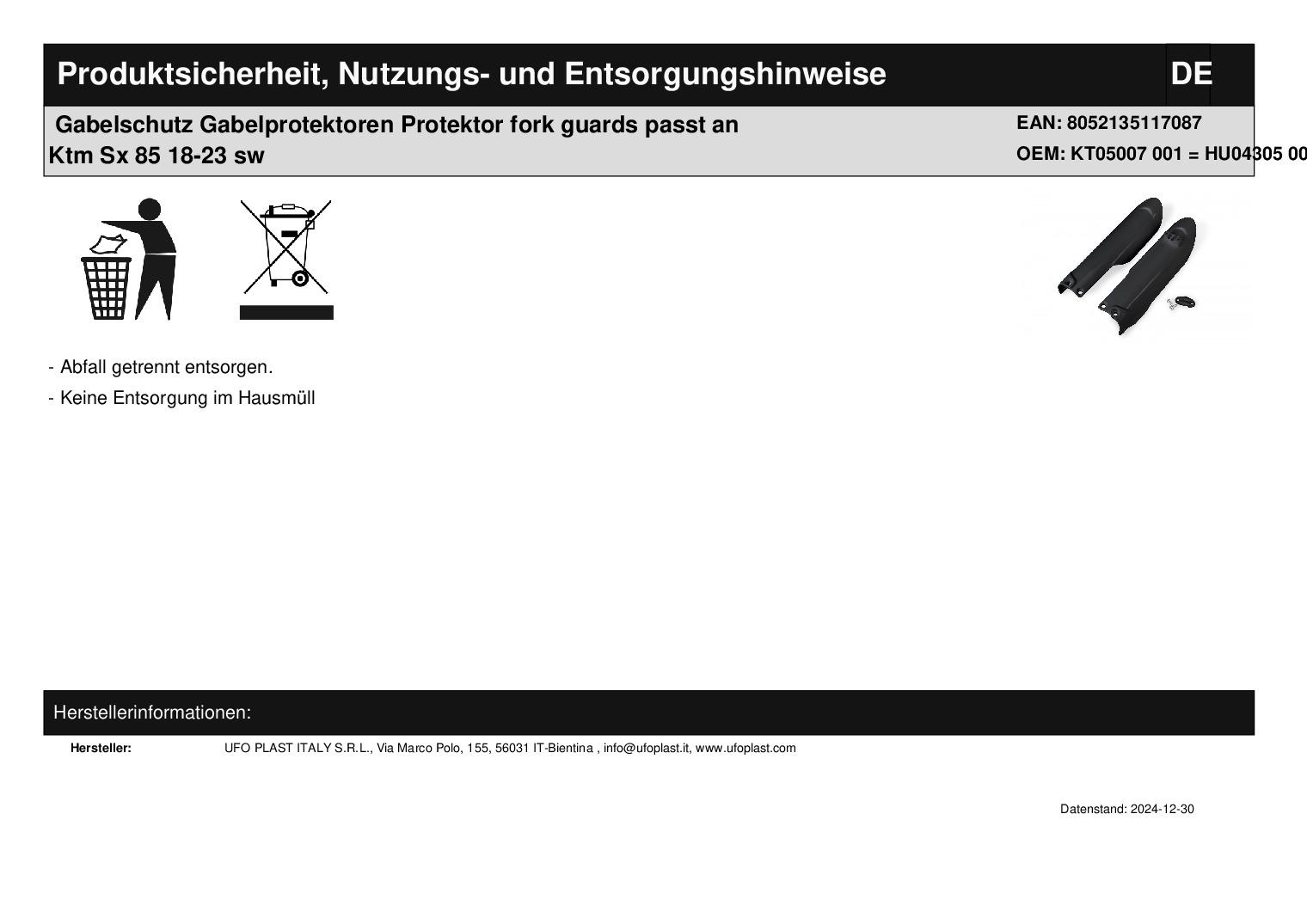 In dieser Auktion gibt es folgenden Artikel zu kaufen: Gabelprotektoren (siehe Foto) Modell: passend für KTM SX 85 Bj.: 18 - 25 passend für Husqvarna TC 85 18 - 22 passend für GasGas MC 85 Bj.: 21 - 25 Lieferumfang: siehe Foto Artikelzustand: neu Es handelt sich hierbei um kein Originalteil Bei Unklarheiten oder Fragen bitte erst E-Mail schreiben.