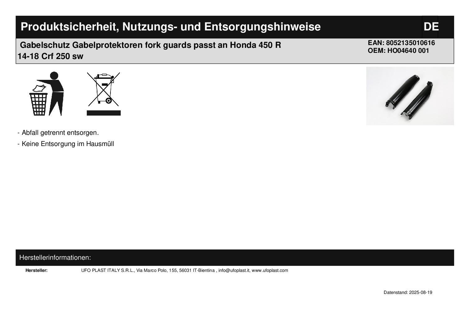 In dieser Auktion gibt es folgenden Artikel zu kaufen: Gabelprotektoren (siehe Foto) Fahrzeug: passend für Honda Crf 250 R Bj.: 2014 - 2018 Crf 450 R Bj.: 2009 - 2018 Lieferumfang: siehe Foto Artikelzustand: neu Hierbei handelt es sich um kein Originalteil! Bei Unklarheiten oder Fragen bitte erst E-Mail schreiben.