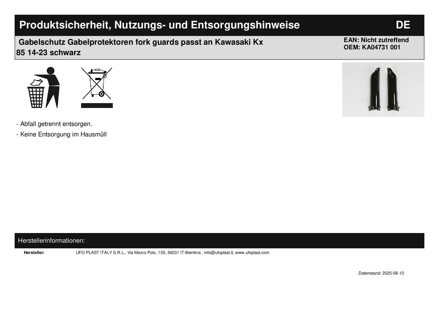 In dieser Auktion gibt es folgenden Artikel zu kaufen: Gabelprotektoren (siehe Foto) Fahrzeug: passend für Kawasaki KX 85 Bj.: 14 - 23 Lieferumfang: siehe Foto Artikelzustand: neu aus Geschäftsauflösung, mit minimalen Lagerspuren; Zustand siehe Foto Bei Unklarheiten oder Fragen bitte erst E-Mail schreiben.