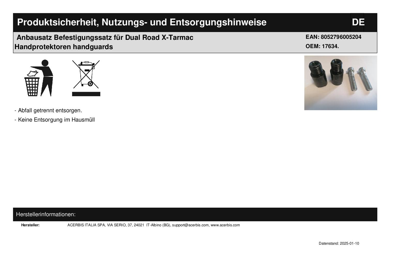 In dieser Auktion gibt es folgenden Artikel zu kaufen: Befestigungskit (siehe Foto) passend für folgende Handprotektoren: Dual Road Oblivion X-Tarmac X-Road X-Road Brake Achtung: Bitte nachfolgende Applikationen beachten! Applikationen: für AC 21618.090 Oblivion passend für Yamaha XJR 1300 Bj.: 15 für AC 13046 Dual Road passend für Yamaha XJ 600 Bj.: 08 - 14 MT 07/09 Bj.: 13 - 15 MT03 660 Bj.: 08 - 13 Neos 50 Bj.: 08 - 12 FZ1 Bj.: 10 - 15 Super Tenere 1200 Bj.: 12 - 15 TDM 900 B.: 08 - 14 T-Max 500, 530 Bj.: 01 - 15 XJR 1300 Bj.: 08 - 13 XJ6 Bj.: 10 - 14 XT 660 R/X Bj.: 07 - 15 für AC 17564. X-Tarmac passend für Yamaha DT 50 Bj.: 03 - 13 J 600 Bj.: 08 - 14 MT 07/09 Bj.: 13 - 15 Neos 50 Bj.: 08 - 10 FZ1 Bj.: 10 - 15 TDM 900 Bj.: 08 - 14 T-Max 500, 530 Bj.: 01 - 15 XJR 1300 Bj.: 08 - 13 XJ6 Bj.: 10 - 14 XT 660 R/X Bj.: 07 - 15 Majestic 400 Bj.: 10 - 15 für AC 17838. X-Road und AC 21615. X-Road Brake passend für Yamaha MT 07/09 Bj.: 13 - 15 MT 03 660 Bj.: 08 -13 T-Max 500, 530 Bj.: 10 - 15 XJR 1300 Bj.: 08 - 15 XT 660 R/X Bj.: 07 - 13 Artikelzustand: neu Lieferumfang: siehe Foto Bei Unklarheiten oder Fragen bitte erst E-Mail schreiben.