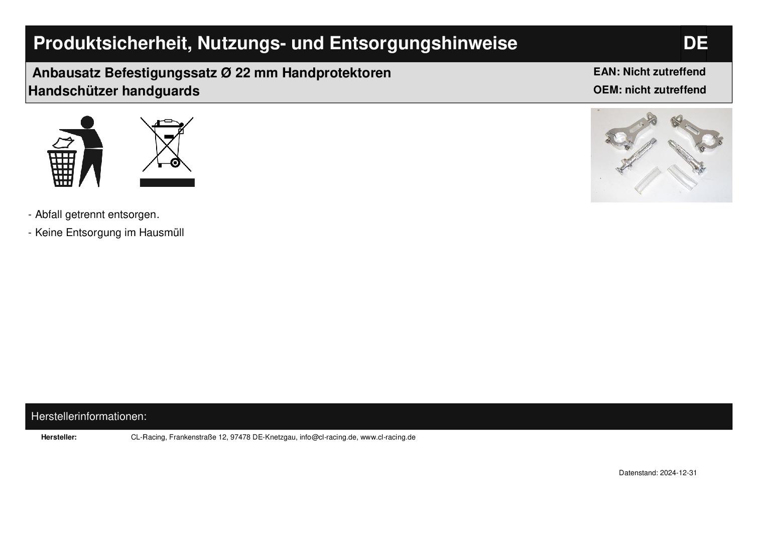 Anbausatz Ø 22 mm für Handprotektoren - Lager -