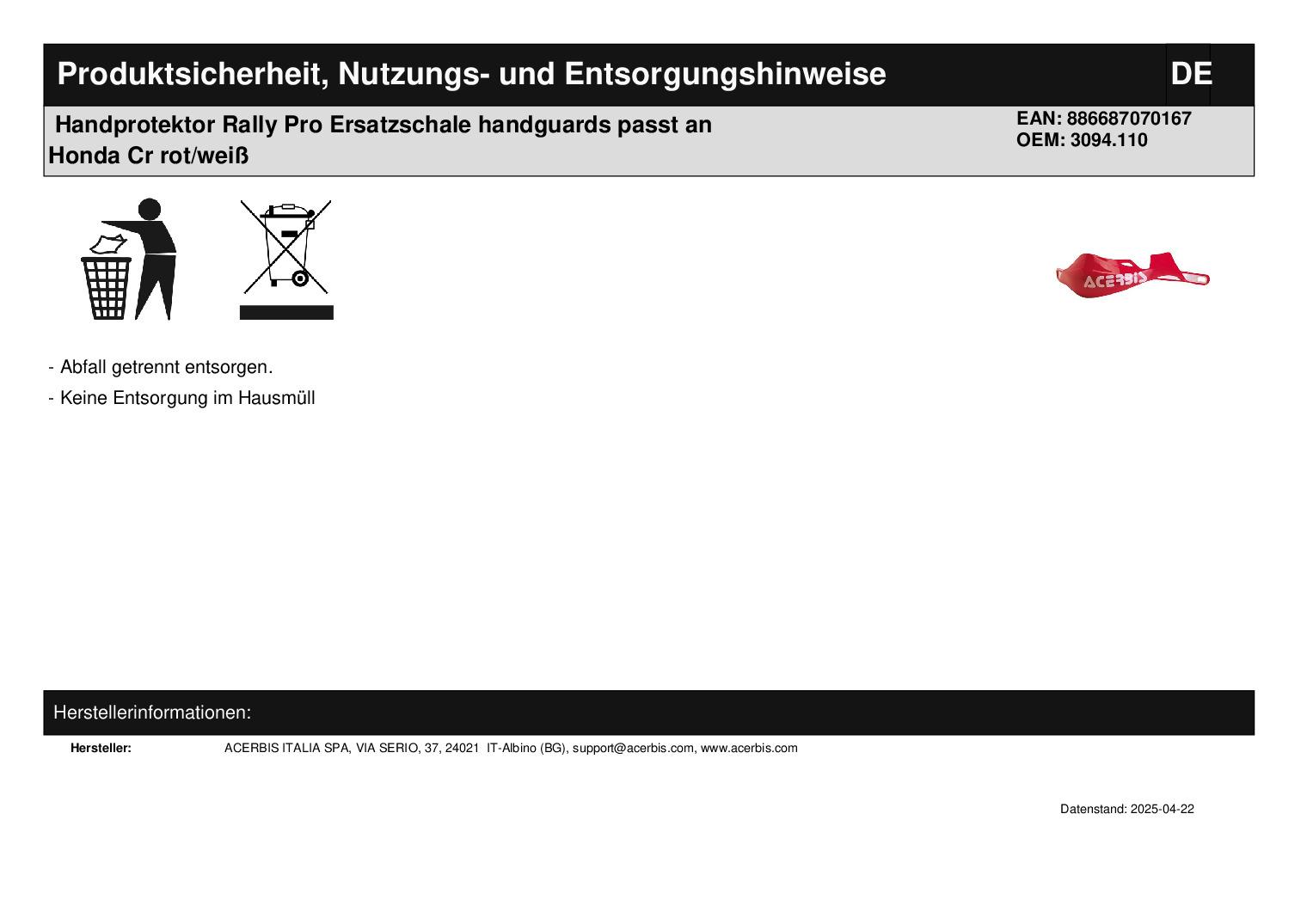In dieser Auktion gibt es folgenden Artikel zu kaufen: Ersatzschalen für Handguards (siehe Foto) Hersteller: Acerbis Rally Pro ohne Anbaukit Farbe: rot/weiß Lieferumfang: 1 Satz links + rechts Artikelzustand: neu Bei Unklarheiten oder Fragen bitte erst E-Mail schreiben.