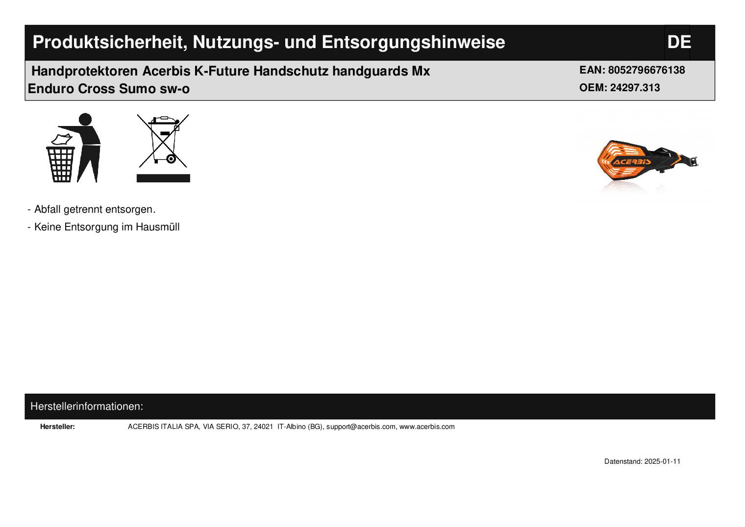 Titel: Handprotektoren Acerbis K-Future Handschutz handguards Mx Enduro Cross Sumo sw-o