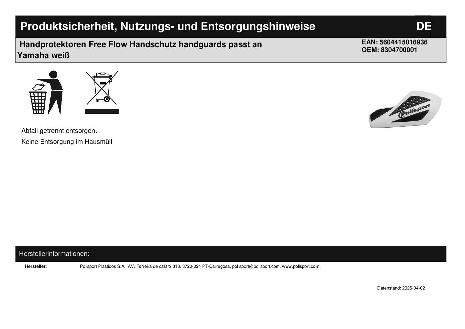 In dieser Auktion gibt es folgenden Artikel zu kaufen: Handguards + Befestigungskit (siehe Foto) Hersteller : Polisport Free Flow Artikelbeschreibung: universelles Handprotektorenpaar Freeflow; produziert mit DGP (Durable Gloss Polypropylene). Diese Kunststoff-Komposition ermöglicht ein Maximum an Glanz und Stabilität. - geeignet für MX, Enduro, ATV - einfache Montage (direkt am Lenker) - hohe Schlagfestigkeit - horizontal in 4 Stufen einstellbar - Bi-Material: Polypropylene und Gummi - integrierte Belüftungslöcher - separate Abdeckung zum Schließen der Belüftungslöcher (im Lieferumfang enthalten) - inklusive Befestigungssatz aus Plastik Lieferumfang : Handguards mit Befestigungskit für diverse Lenkeraußendurchmesser Artikelzustand : neu Bei Unklarheiten oder Fragen bitte erst E-Mail schreiben.