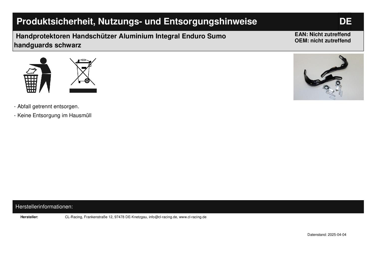 Lieferumfang: Handguards mit Befestigungskit für diverse Lenkeraußendurchmesser