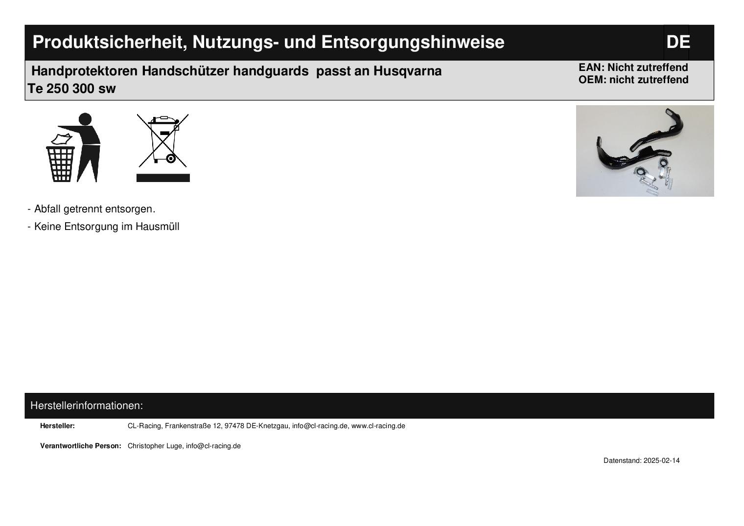 • Handprotektoren Handschützer handguards passt an Husqvarna Te 250 300 sw