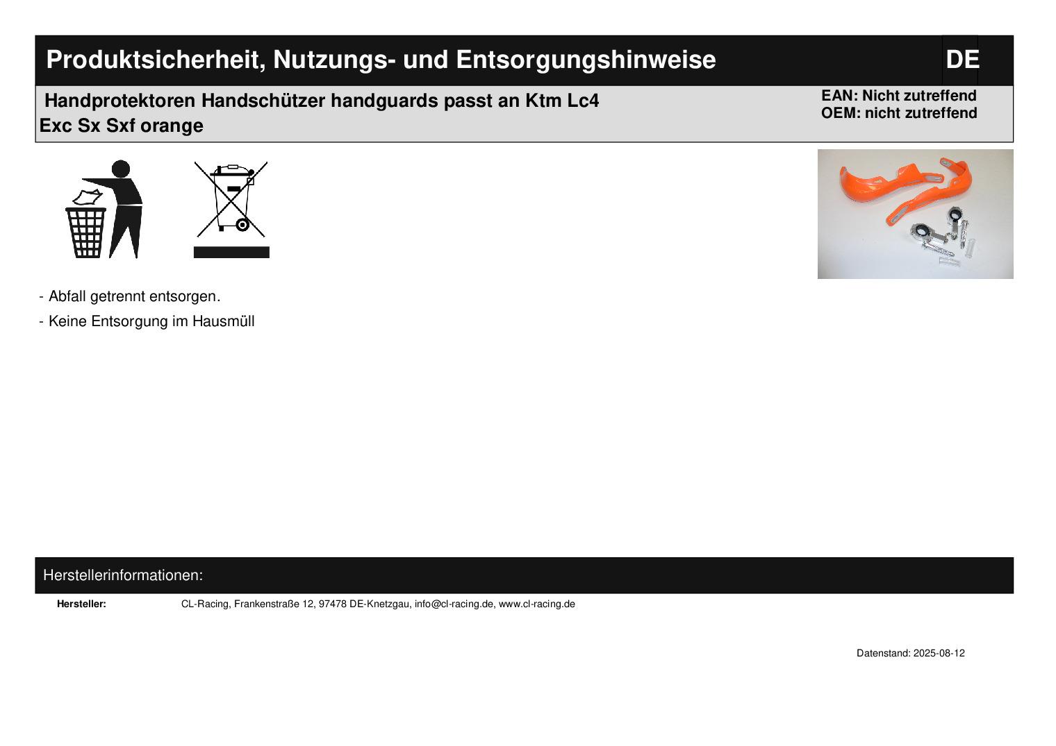 Titel: Handprotektoren Handschützer handguards passt an Ktm Lc4 Exc Sx Sxf orange