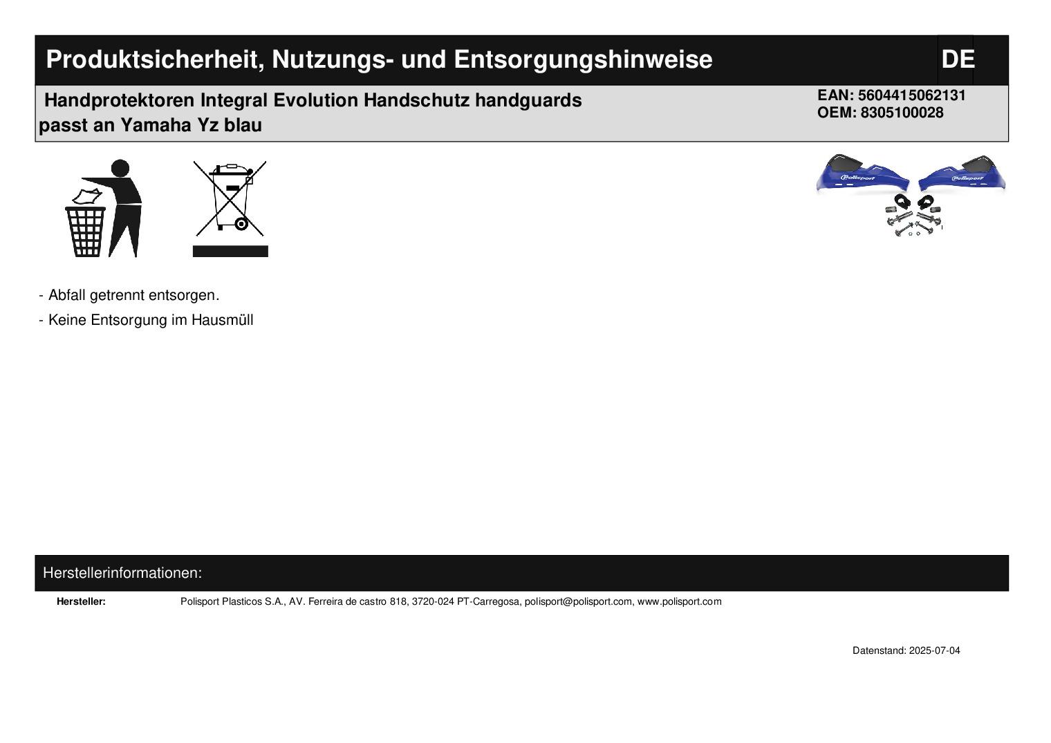 Polisport Evolution Handprotektor blau - Lager -