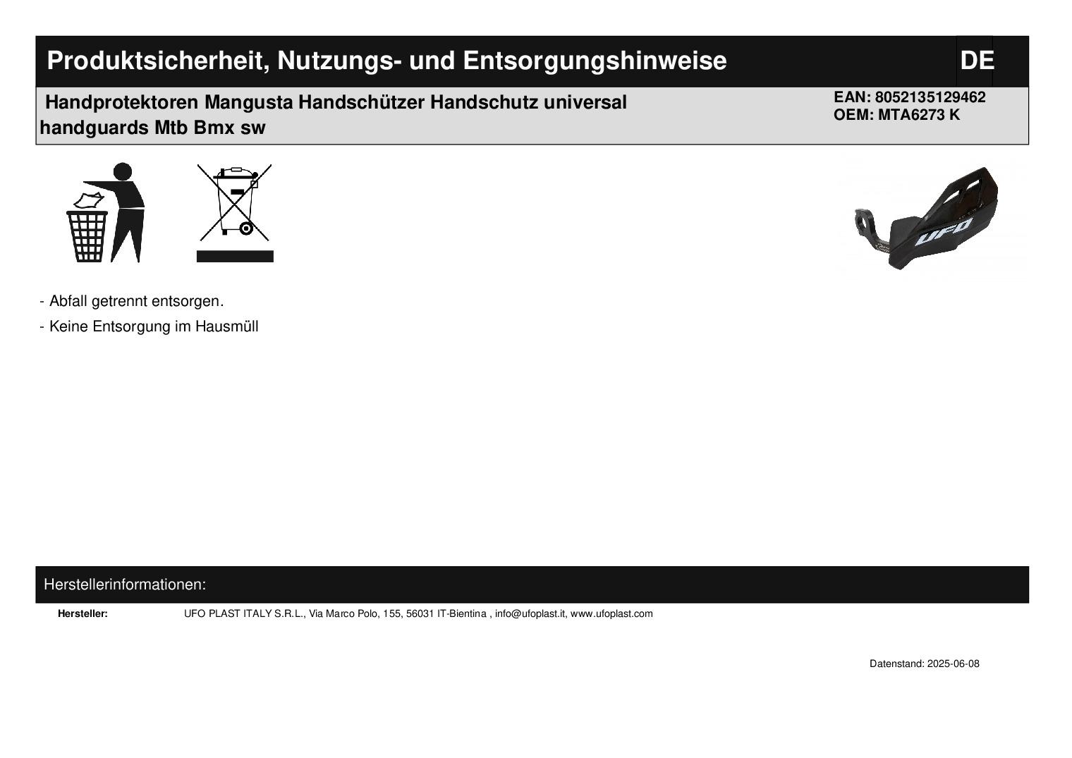 In dieser Auktion gibt es folgenden Artikel zu kaufen: Handprotektoren (ähnlich Foto) Modell: universal für Mountainbikes, BMX, Minicross etc. Details: - offene Handguards - maximaler Schutz von Händen und Armaturen - Material: Thermoplastik - leicht, kompakt und bruchsicher - Anbau ohne Demontage der Armaturen passend für Lenkerdurchmesser 22 mm Lieferumfang: 1 Paar mit Anbauteilen Artikelzustand: neu Bei Unklarheiten oder Fragen bitte erst E-Mail schreiben.