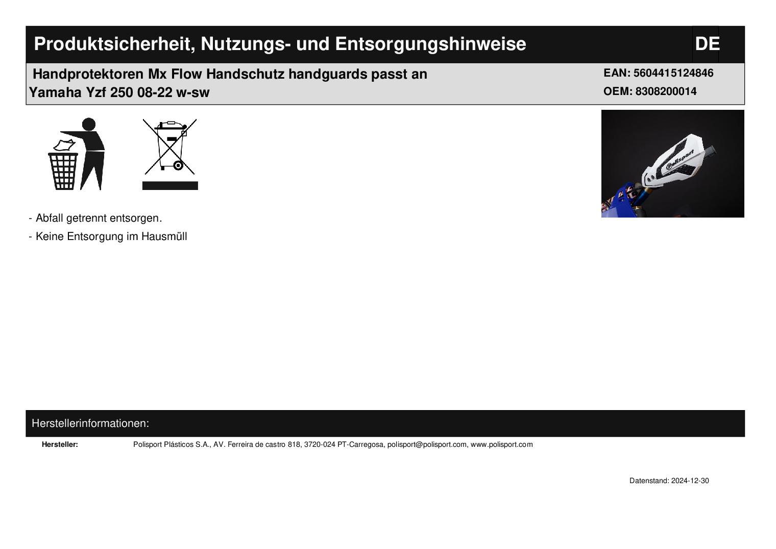 In dieser Auktion gibt es folgenden Artikel zu kaufen: Handprotektoren (ähnlich Foto) Bild 4 dient nur zur Veranschaulichung! Hersteller: Polisport MX Flow Modell: passend für Yamaha WR 250 F Bj.: 08 - 25 WR 450 F Bj.: 08 - 25 YZ 125 Bj.: 08 - 25 YZ 250 Bj.: 08 - 25 YZ 250 F Bj.: 08 - 25 YZ 450 F Bj.: 08 - 25 Artikelbeschreibung: - zusätzliches, universelles Montagekit für schnellen und leichten Einbau sowie perfekten Sitz am Lenker inclusive - große Kunststoff-Handschale für optimalen Schutz der Hände und des Hauptbremszylinders - schmal und unauffällig - horizontal ausgerichtetes Luftstromkühlventil für eine bessere Kühlung - schnelle und einfache Installation - Befestigung an der Vorderseite mit Schrauben für leichten Ein- und Ausbau - alle Anbauteile inclusive - Montagekits ermöglichen eine uneingeschränkte Installation am Lenker - mit Polisport-Logo - inclusive Montagekits Lieferumfang: Handschützer mit Anbausatz - ohne Motorrad! Artikelzustand: neu Bei Unklarheiten oder Fragen bitte erst E-Mail schreiben.