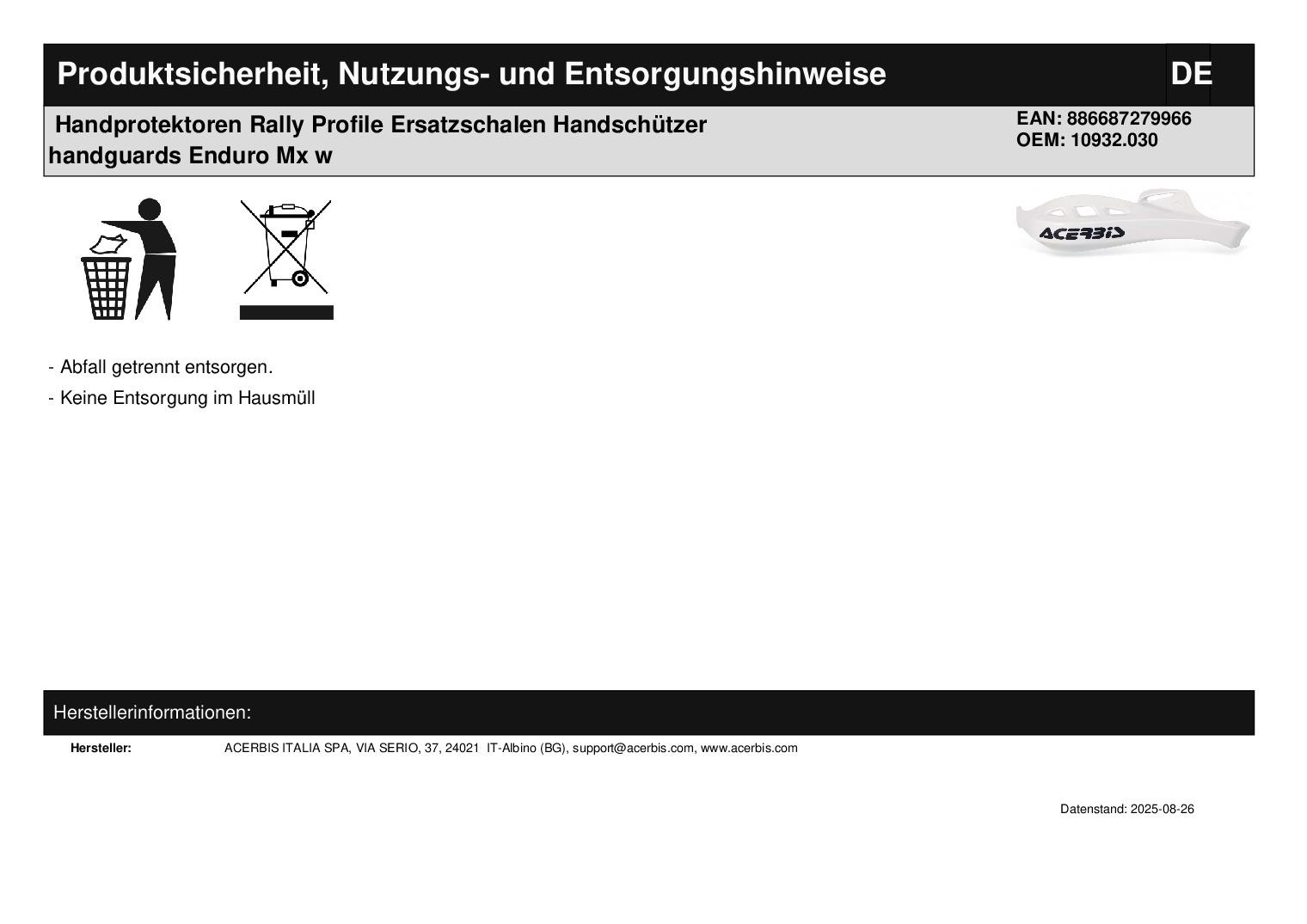 In dieser Auktion gibt es folgenden Artikel zu kaufen: Ersatzschalen für Handprotektoren ohne Anbaukit (siehe Foto) Hersteller: Acerbis Rally Profile Modell: universal Lieferumfang: 1 Satz links und rechts Artikelzustand: neu Bei Unklarheiten oder Fragen bitte erst E-Mail schreiben.