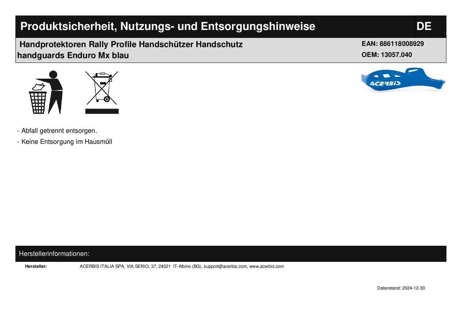 In dieser Auktion gibt es folgenden Artikel zu kaufen: Handschutz (siehe Foto) Hersteller: Acerbis Rally Profile Modell: universal Details: passend für sämtliche Enduros, Crosser, Quads, ATV´s usw. mit einem Lenkerdurchmesser von Ø 22 - 28 mm Bild 3 dient nur zur Veranschaulichung! Lieferumfang: 1 Paar mit Anbauteilen Artikelzustand: neu Bei Unklarheiten oder Fragen bitte erst E-Mail schreiben.