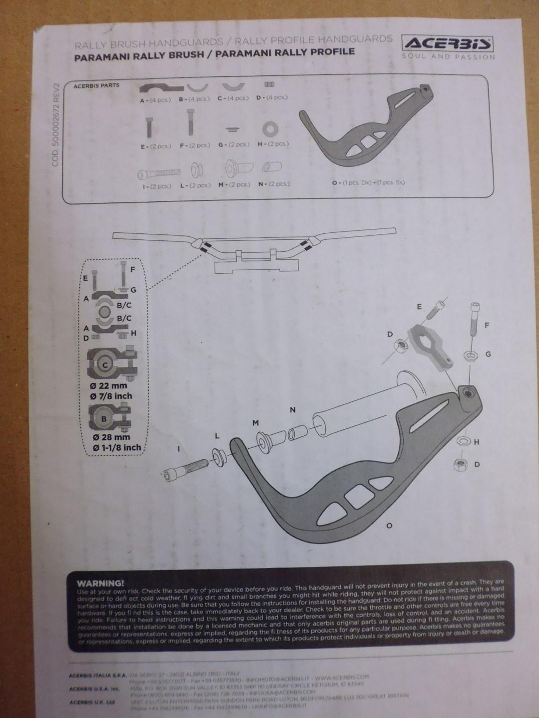 In dieser Auktion gibt es folgenden Artikel zu kaufen: Handschutz (siehe Foto) Hersteller: Acerbis Rally Profile Modell: universal Details: passend für sämtliche Enduros, Crosser, Quads, ATV´s usw. mit einem Lenkerdurchmesser von Ø 22 - 28 mm Lieferumfang: 1 Paar mit Anbauteilen Artikelzustand: neu Bei Unklarheiten oder Fragen bitte erst E-Mail schreiben.